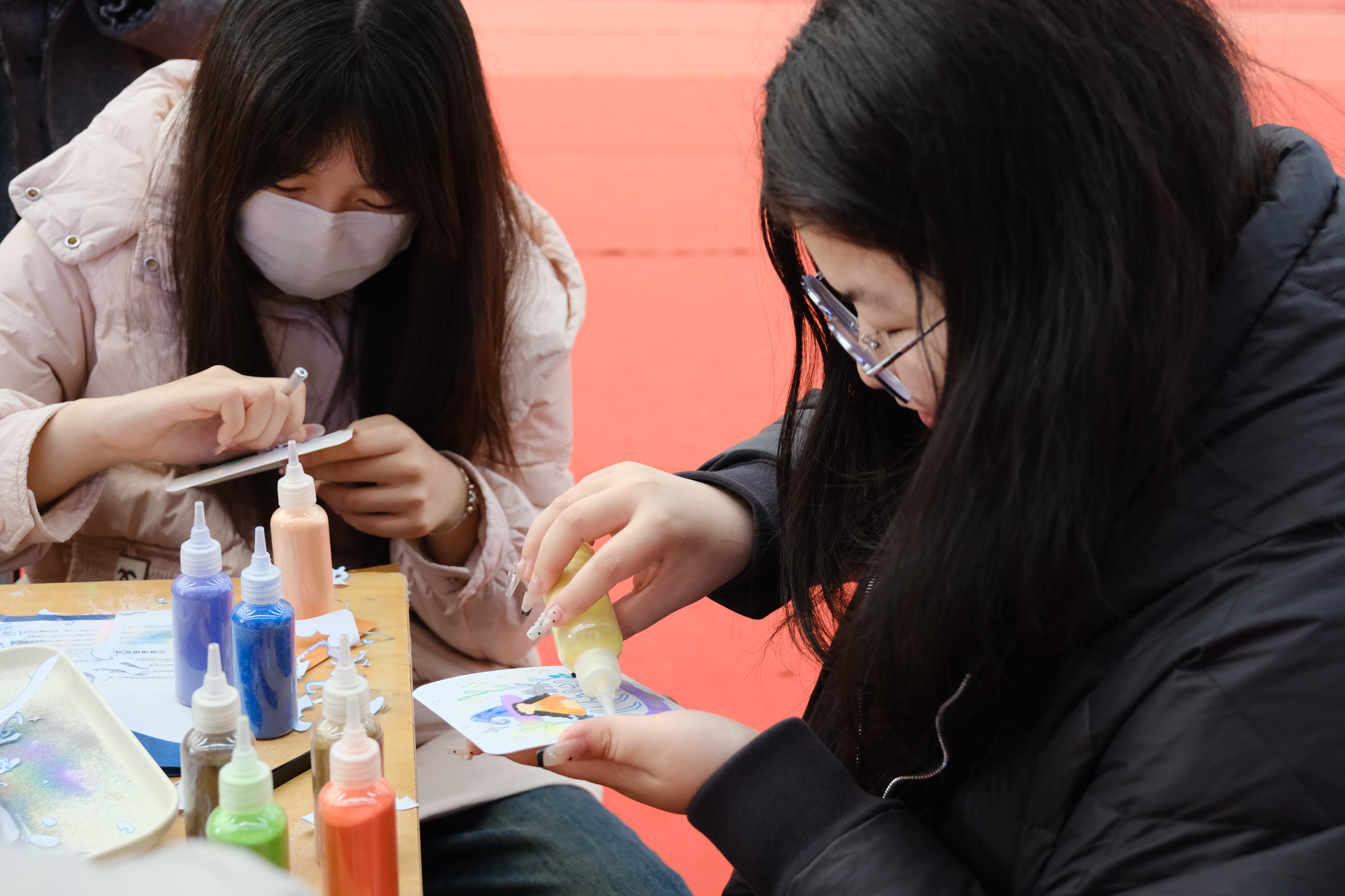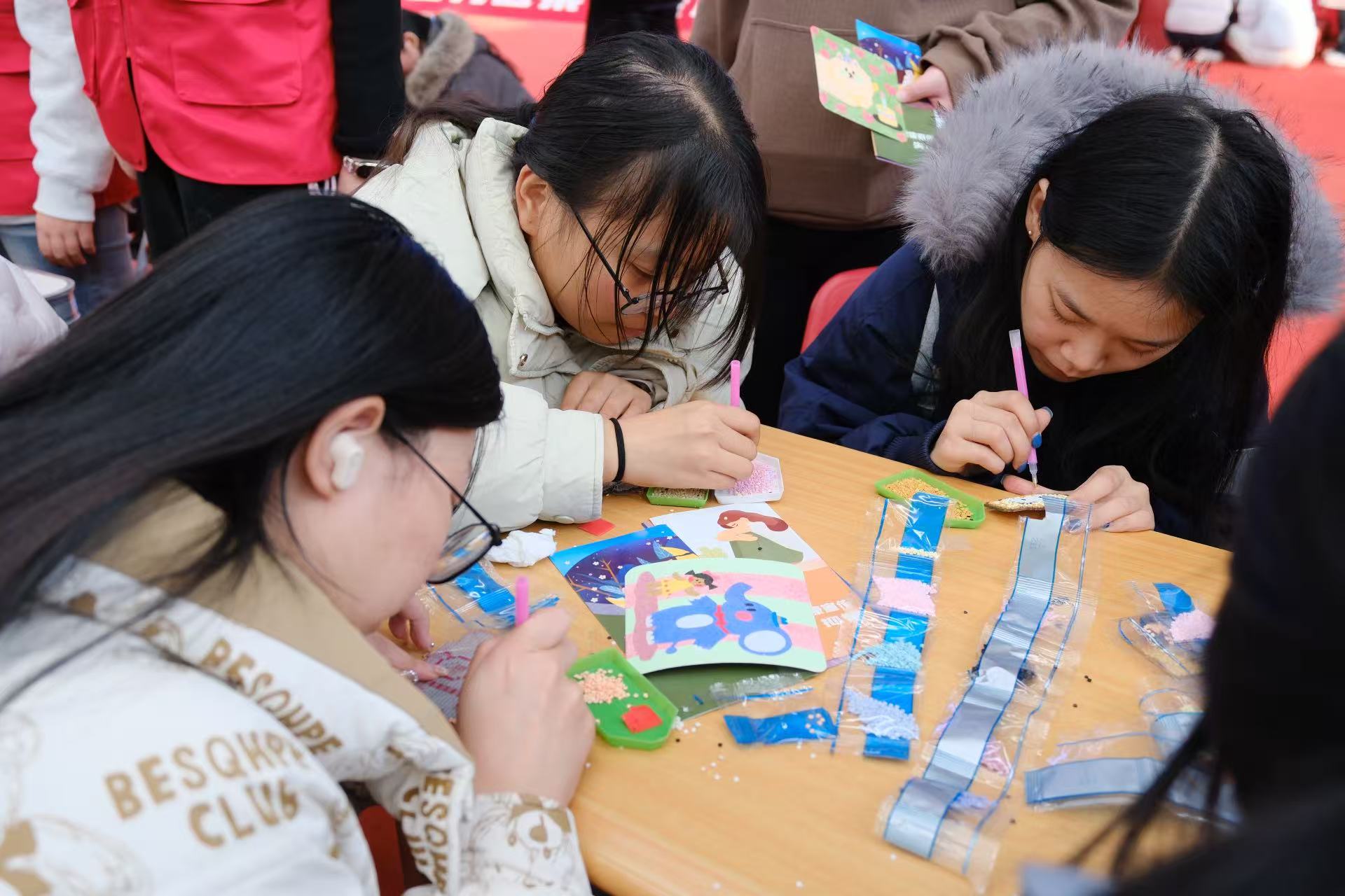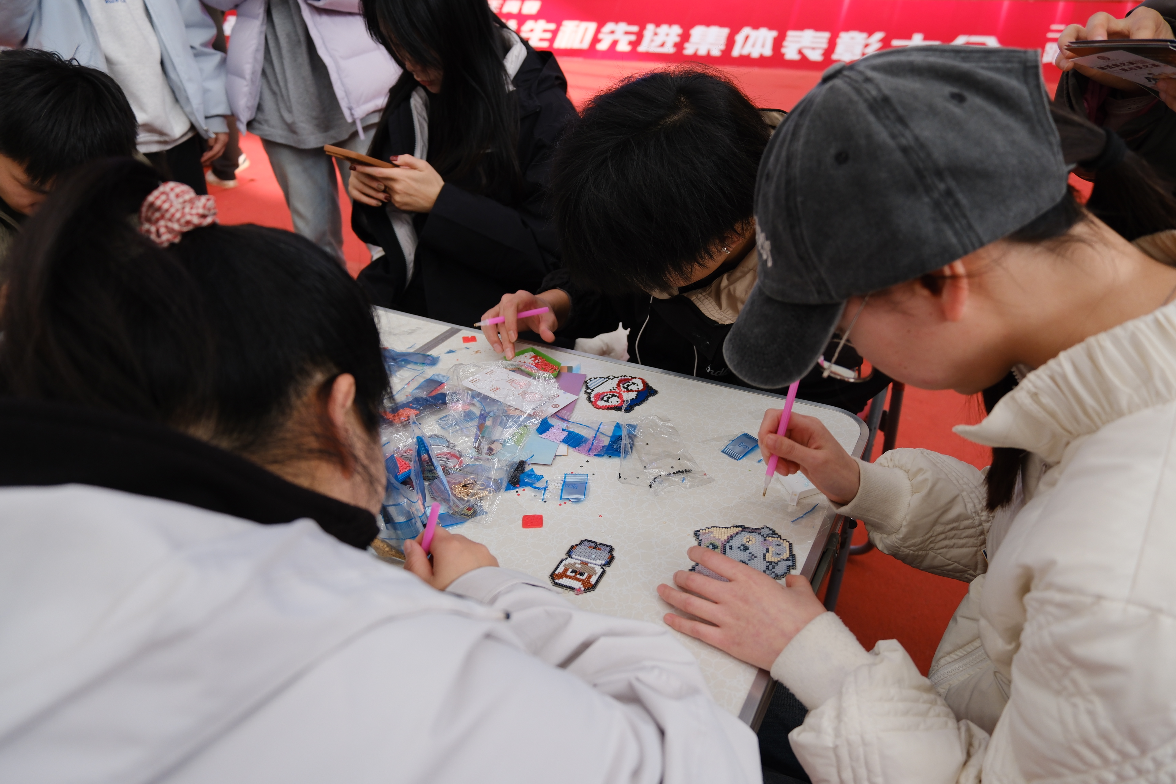 游园会的体验之旅继续推进,“以劳固本,以创筑梦”环节让大家在劳作中感受创造的价值,参与者领取钻石画材料包后,静心将钻粒精准嵌入画布对应位置,一粘一贴间,空白画布渐渐绽放出绚丽图案。亲手劳作的过程里,大家不仅体会到创造的意义,更用指尖耕耘编织起属于自己的创意梦想。