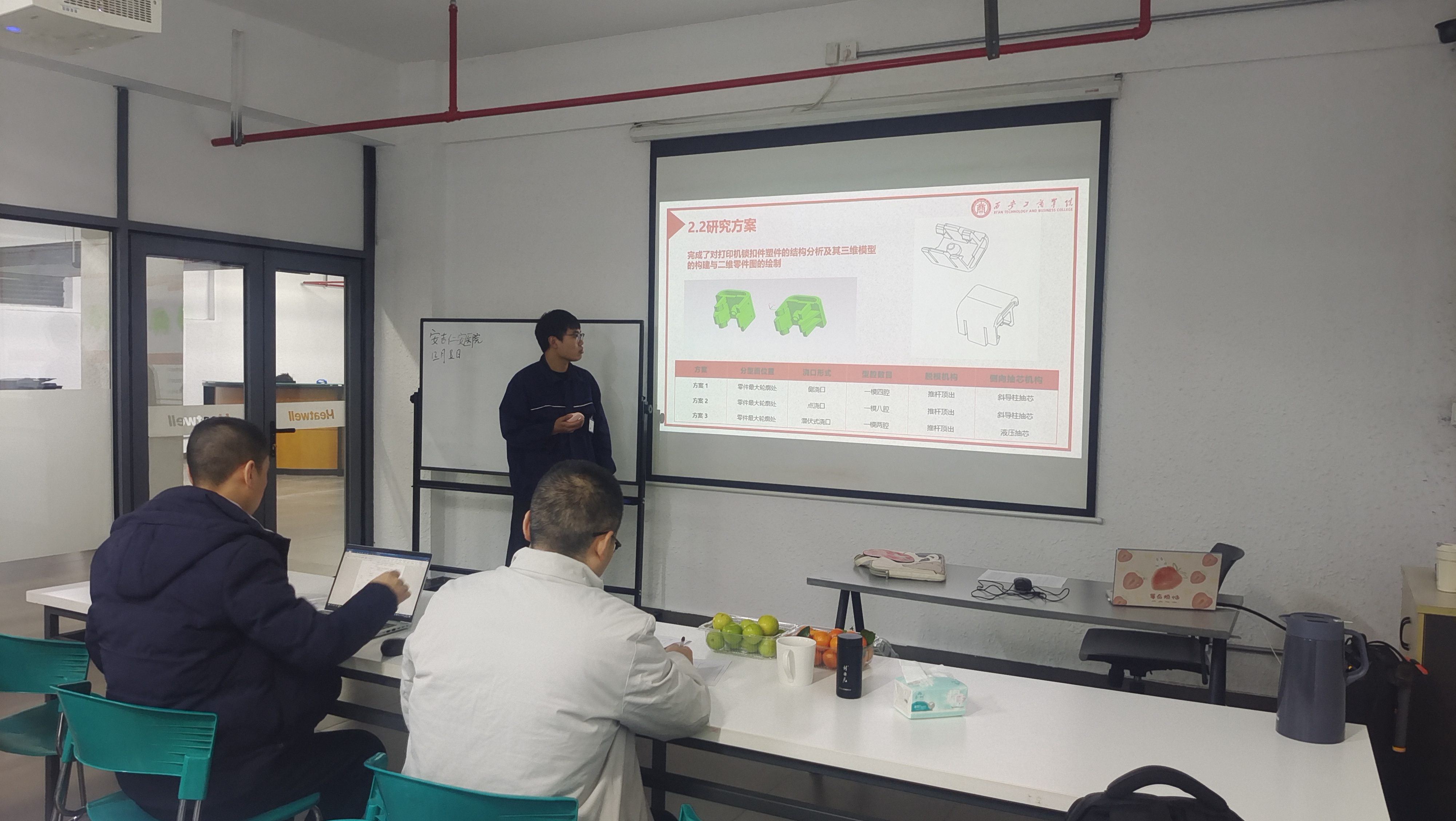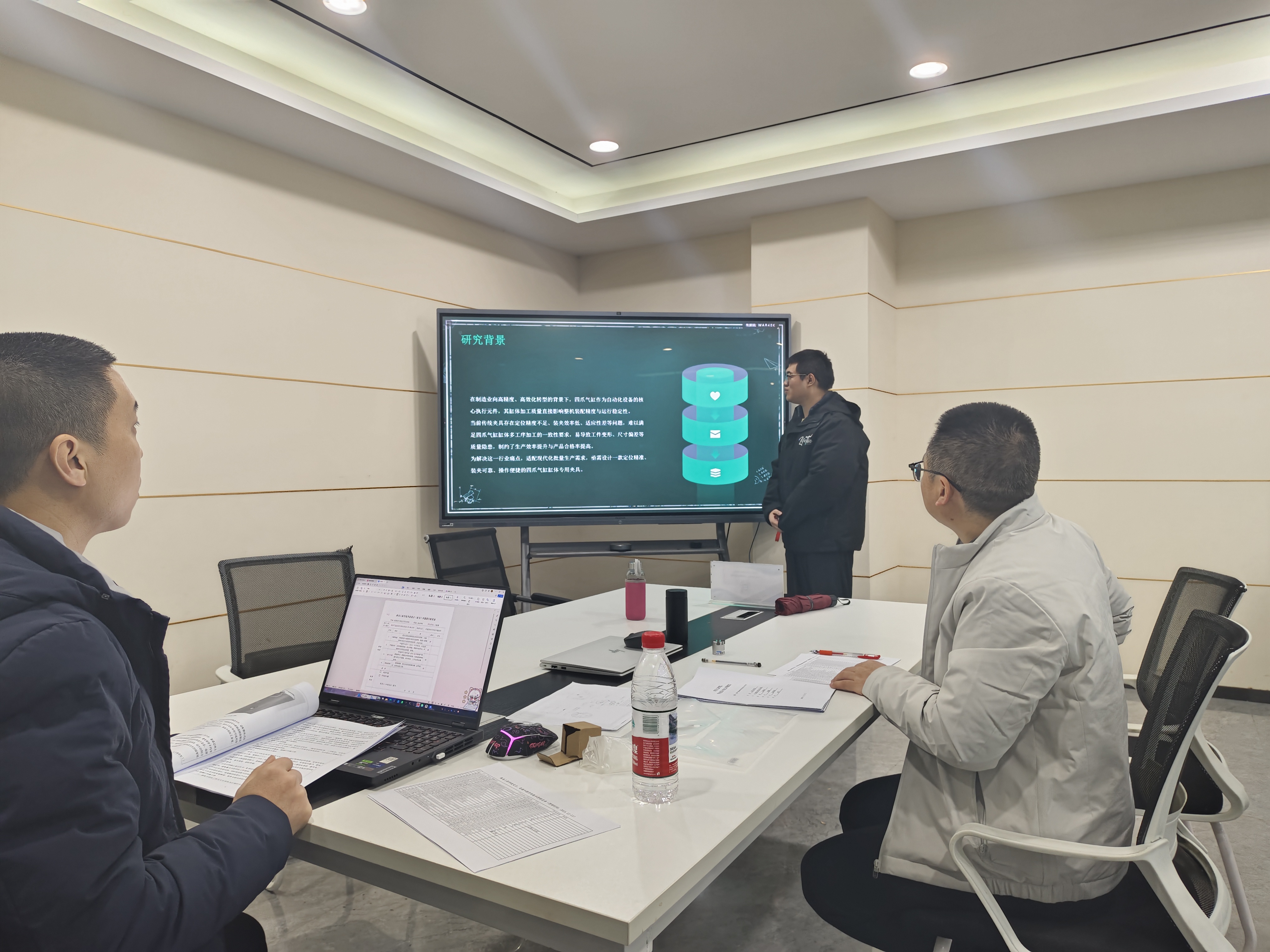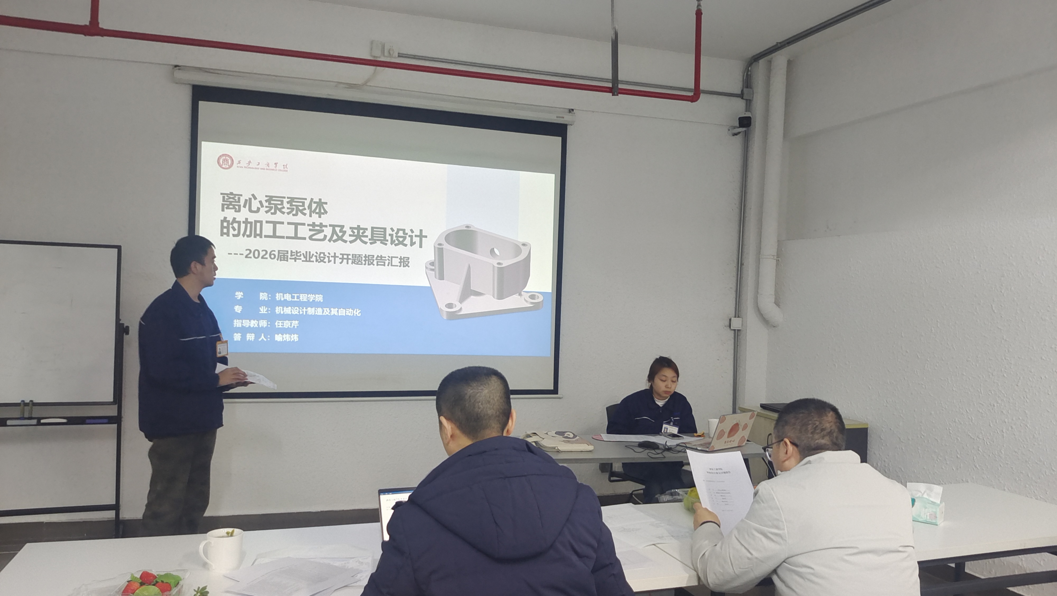 在企业会议室举行的毕业设计开题答辩中,学生围绕选题来源、工程背景、研究目标、技术路线和实施方案等内容进行了系统汇报。专家组紧密结合企业生产实际和岗位技术要求,对毕业设计选题的工程属性、应用价值和可实施性进行了重点把关,并就方案优化、技术路线调整和研究深度提升等方面提出了针对性指导意见,引导学生将企业真实工程问题转化为毕业设计研究内容。
